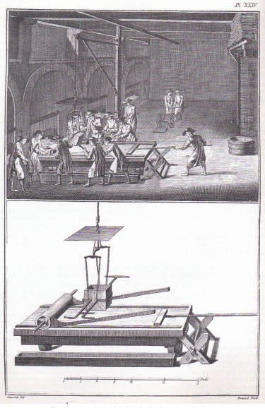 "Glaces, l'opération de Verser et de Rouler" planche XXIV Manufacture des Glaces" - L'Encyclopédie de Diderot et d'Alembert |