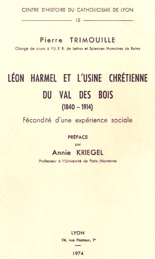 LÉON HARMEL ET L'USINE CHRÉTIENNE Fécondité d'une expérience sociale Pierre TRIMOUILLE
