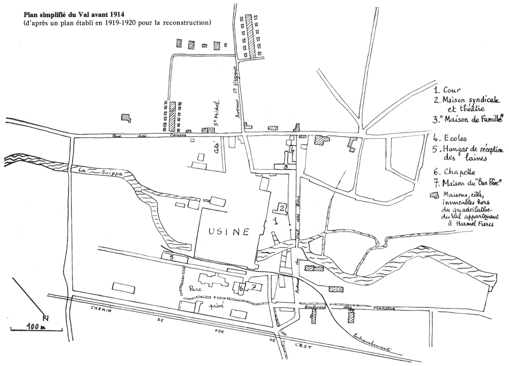 La première concerne le milieu du Val des Bois. En apparence, la filature Harmel Frères n'est qu'une entreprise classique, d'importance moyenne, qui dépend de la place de Reims. Située à dix-huit kilomètres de la ville par la route, dans la vallée industrialisée de la Suippe, elle occupe quelques centaines d'ouvriers et d'ouvrières, soit beaucoup moins que les grandes affaires de même nature dans le Nord. La raison de son importance est d'un autre ordre : le Val des Bois constitue un laboratoire social unique en son genre.