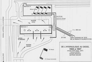 À partir de 1933, les péniches vont abandonner la traction animale pour être tirées par des tracteurs. Ceux-ci utilisaient l’énergie électrique produite par l’usine, des groupes turboalternateurs ayant été installés.