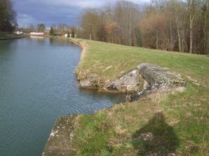 La rigole d’alimentation venant de Châlons, qui fuyait beaucoup, a été désaffectée et l’eau s’évacue maintenant en amont de l’écluse de Juvigny.