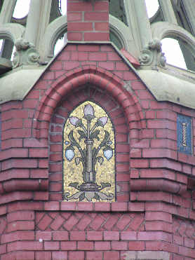 L'ancienne maison mère de la Compagnie Générale d'Electricité (AEG), 1893, La façade est ornée de nombreux reliefs en terre cuite, représentations allégoriques de l'electricité. |