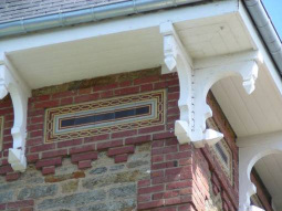 Kerozar - 1880 Avec son petit porche de bois recouvert de tuiles vertes |