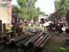 Dans la cour, une partie de la collection de machines. Au premier plan, un compresseur Walschaerts (fabrique de papier peint Bosquet, Molenbeek). |