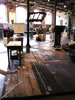 découverte, avec un pont roulant. Au fond de l'atelier, l'emplacement