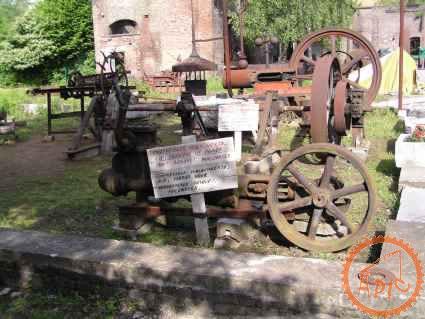 Dans la cour, une partie de la collection de machines. Au premier plan, un compresseur Walschaerts (fabrique de papier peint Bosquet, Molenbeek).
