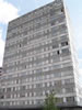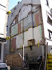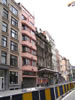 | Rue Saint Martin, Molenbeek. Une tour en acier, de la fin des années 1960. Il était prévu d'en construire 12 sur ce site, finalement les logements anciens (même rue coté gauche) ont été sauvés grâce à l'action de l'association d'habitants "La Rue" et réhabilités. |