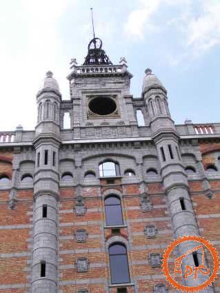 La façade, au-dessus de la porte ressemble à une forteresse.