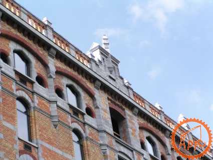 On retrouve les portes pour les 4 étages, avec en haut du mur, un emplacement pour attacher un système de poulies afin de monter directement des marchandises dans les étages.