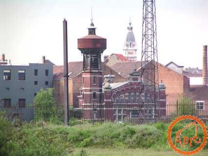Au fond, toujours sur le site : le château d'eau et la centrale électrique ou cabine de haute tension désservant le Nord-Ouest. de la région.