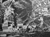 Vue sur les carrières : Installer une usine en cet endroit difficile d'accès pouvait sembler risqué mais Güell était associé à Ferrer-Vidal qui possédai t à proximité des mines d'asphalte et de lignite et à Joaquim d'Abadal propriétaire de carrières que l'on voit sur le cliché en arrière plan. |