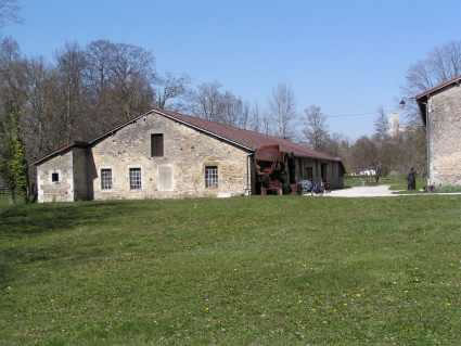 'ancienne halle à charbon, elle abrite aujourd'hui les expositions temporaires. La prairie correspond à l'emplacement du parc à minerai. Derrière, le long du canal, se trouvaient le patouillet et le bocard.