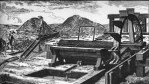 Maquette présentant le patouillet selon l'encyclopédie de Diderot. Machine qui lave le minerai de fer afin de le séparer de la roche.