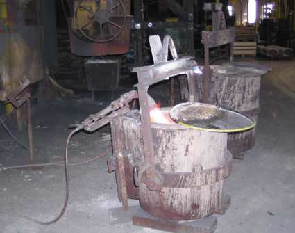 Avant de recevoir le métal en fusion, le godet est maintenu à haute température grâce à un chalumeau