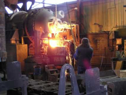 L'atelier de fusion : le métal est amené à 1500° Celsius et il est coulé dans le godet