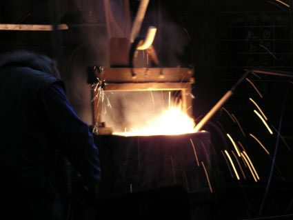 L'atelier de fusion : le métal est amené à 1500° Celsius et il est coulé dans le godet