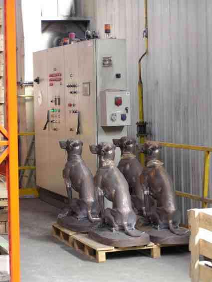 Les chiens en fonte : modèle classique, aujourd'hui à la mode, de la fonderie d'art Haut-Marnaise. Ils symbolisent aussi l'aspect moderne de la société