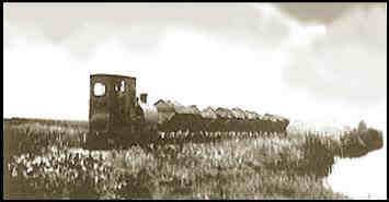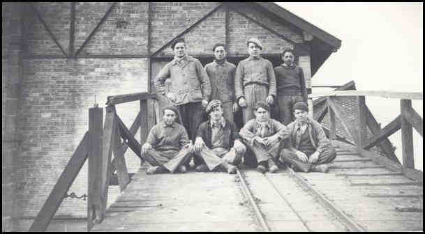 Ouvriers sur la rampe où les wagonnets étaient tirés par un treuil lorsqu’ils arrivaient du terrier avant que la terre ne soit vidée sur un tapis roulant