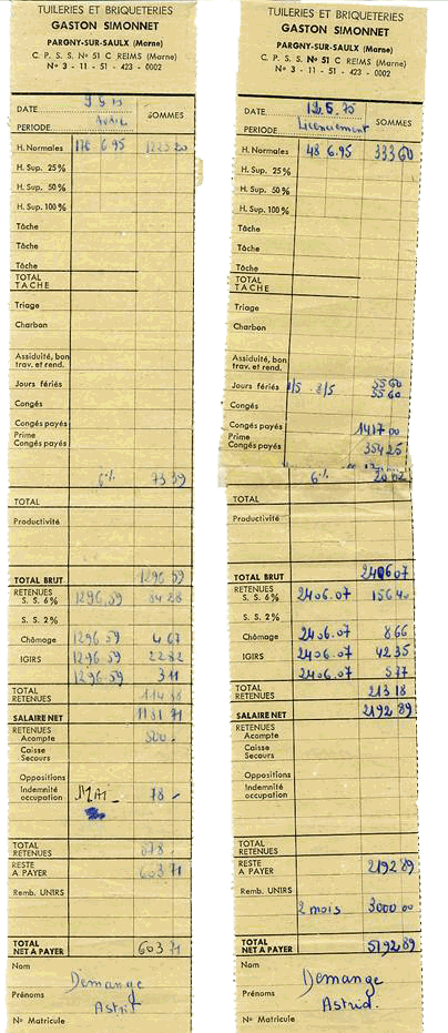 Deux dernières fiches de paie de Mme Demange avant son licenciement