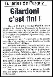 Il y a eu un très grand engouement et l’usine où je travaillais faisait de gros bénéfices. C’était une usine qui était très rentable. Cette unité s’est arrêtée en 1986 parce que la société a eu quelques difficultés financières et qu’elle a été rachetée par Huguenot-Fénal.A partir de ce moment-là, le personnel qui y travaillait a été licencié. Les hommes ont été reclassés au sein de la société Huguenot- Fénal. Personnellement, j’ai continué à travailler sur le site Gilardoni jusqu’en 1993 et j’ai été licencié pour raisons économiques. J’ai bénéficié de la retraite en 1998. |