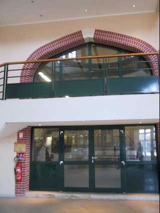 Dans la tour gauche du cellier Jeanne- d'Arc un escalier moderne reprend les lignes et les couleurs traditionnelles. La forme des ouvertures est conservée.