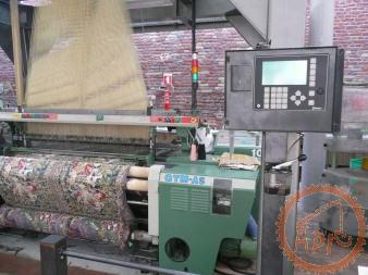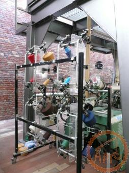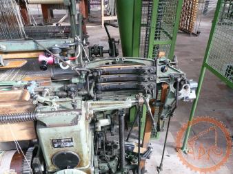 1950 : Métier Saurer - (pick-pick) avec 4 boîtes montantes de chaque côté pour les navettes (7 couleurs de trame possibles) Autre innovation : si le fil de chaîne se casse la machine s'arrête automatiquement. |