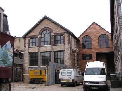 La façade rénovée qui reprend la forme ancienne des fenêtre typique de cette entreprise (on retrouve cette forme dans le centre commercial moderne des magasins d'usine de Pont-Saint-Marie)