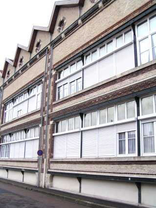 Façade de l'usine rue Courtalon. On remarque deux bâtiments de facture différentes.