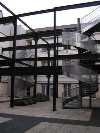 Au centre des ateliers un "puits de lumière" a été créé. Les poutres ont été conservées, des escaliers d'accès ajoutés.