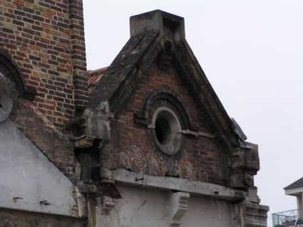 avec un oeil de bœuf par travée . Un mur de brique occupe encore l'espace