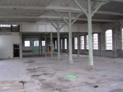 L'atelier en rez-de-chaussée : charpente entièrement en bois. Cet atelier va être divisé en six lofts.