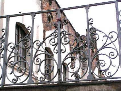 Entre les bātiments une rambarde, ferronnerie d'art.