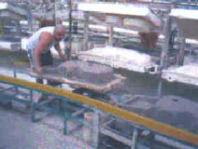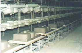 Une chaîne automatisée où les robots faisaient tout le programme, fabriquait des vasques de lavabo.
