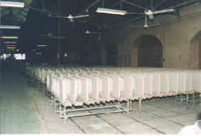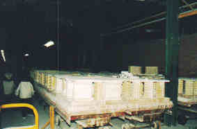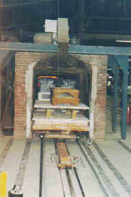 Les pièces sont chargées sur des chariots, puis avancent lentement dans le four jusqu’au point le plus chaud (1220° C) |